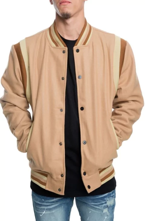 CHAQUETA VARSITY DE LANA. PRESENTA CIERRE DE BOTÓN A PRESIÓN,